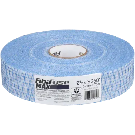 Армирующая лента FibaFuse® MAX — это инновационная армированная безбумажная соединительная лента. Она имеет такую ??же открытую структуру волокон, как и оригинальная лента Fiba Fuse®, с пористой конструкцией, которая позволяет составу протекать через ленту для более прочного соединения. Это значительно снижает вероятность появления трещин и устраняет пузыри. Синий армирующий слой имеет трехстороннюю структуру, которая обеспечивает устойчивость к растрескиванию в нескольких направлениях и предотвращает случайный разрыв ленты на внутренних углах. Не боится воздействия влаги, устойчива к плесени. Производство США монтажной ленты FibaFuse® MAX можно наносить либо с помощью автоматических инструментов, либо вручную, что идеально подходит для внутренних углов, заплат и ремонта.