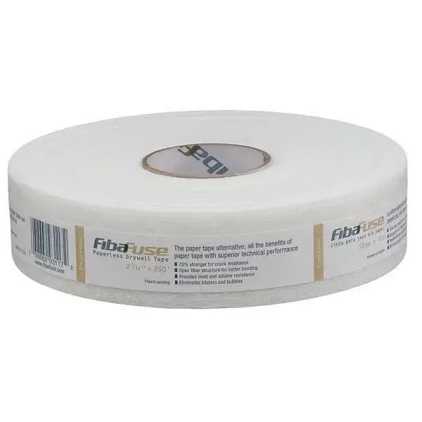 Армирующая лента FibaFuse® - это оригинальная безбумажная гипсокартонная лента, которая легко наносится и создает более прочные швы по сравнению с бумажной лентой. Пористая конструкция позволяет избежать образование пузырей, позволяя смеси протекать через ленту для более прочного соединения.Не боится воздействия влаги, устойчива к плесени.На 76% прочнее бумажной ленты. Производство США. Fiba Fuse® можно наносить либо с помощью автоматических инструментов, либо вручную, что идеально подходит для внутренних углов, заплат и ремонта.