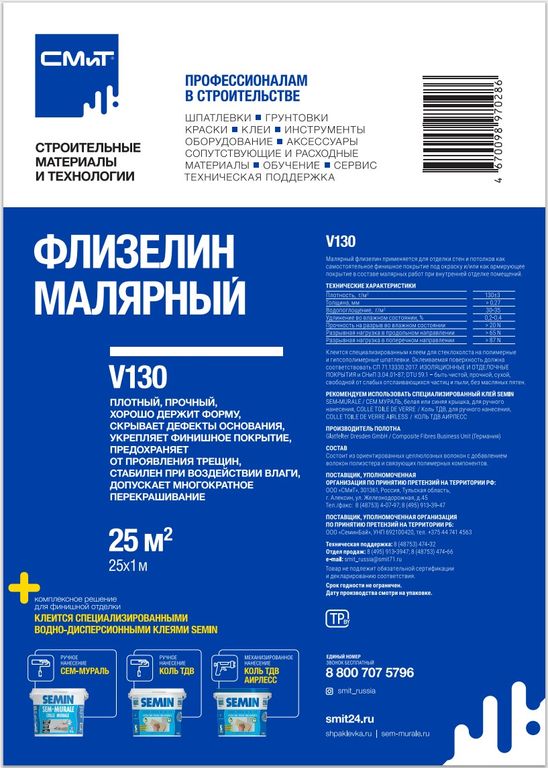 Флизелин малярный СМиТ V150, плотностью 150 г/м2 (длина 25 м, ширина 1 м)