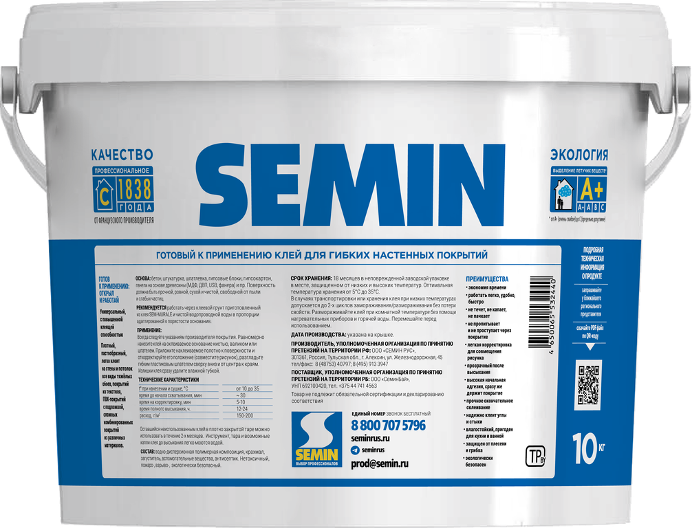 SEMIN SEM-MURALE- Готовый клей для всех типов обоев 5 и 10кг.