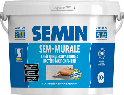 SEM-MURALE Готовый обойный клей с высокой клеящей способнос-тью. Рекомендован многими производителями тяжелых обоев, текстильных обоев стеклообоев, и различных эксклюзивных настенных покрытий. Обеспечивает идеальную подгонку стыков, отсутствие отслоений.